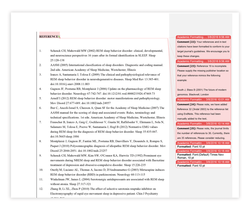 AJE保证将根据目标期刊的指南进行排版,并且将添加批注,告知是否缺少了提交论文所必须的要素。如果目标期刊的编辑提出任何有关论文排版的问题,我们将免费重排。